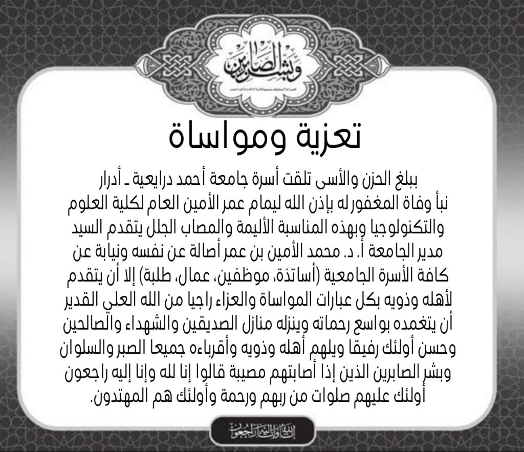 تعزية إلى عائلة ليمام عمر الأمين العام لكلية العلوم والتكنولوجيا 811 Share FacebookGoogle+البريد الإلكترونيTwitter