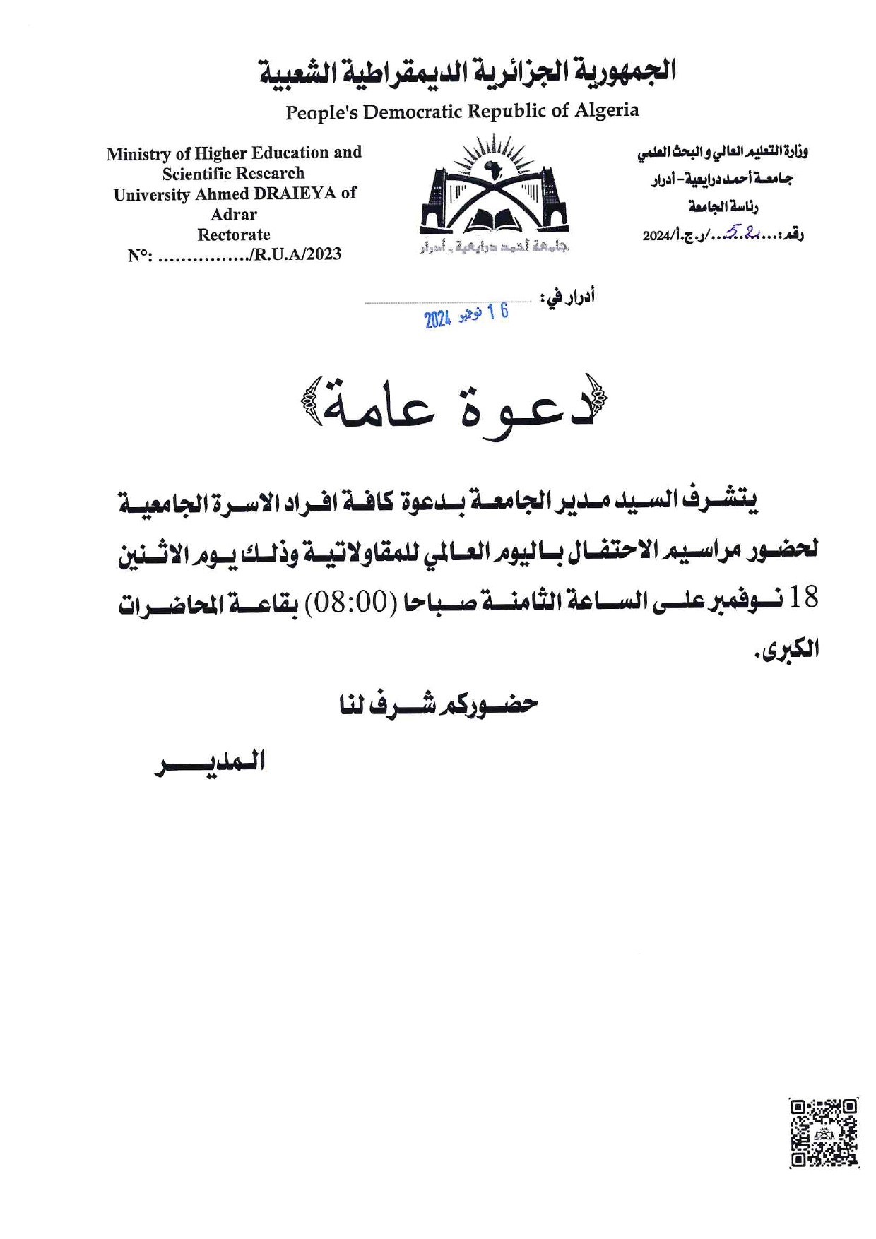دعوة عامة لحضور مراسيم الاحتفال باليوم العالمي للمقاولاتية 397 Share FacebookGoogle+البريد الإلكترونيTwitter