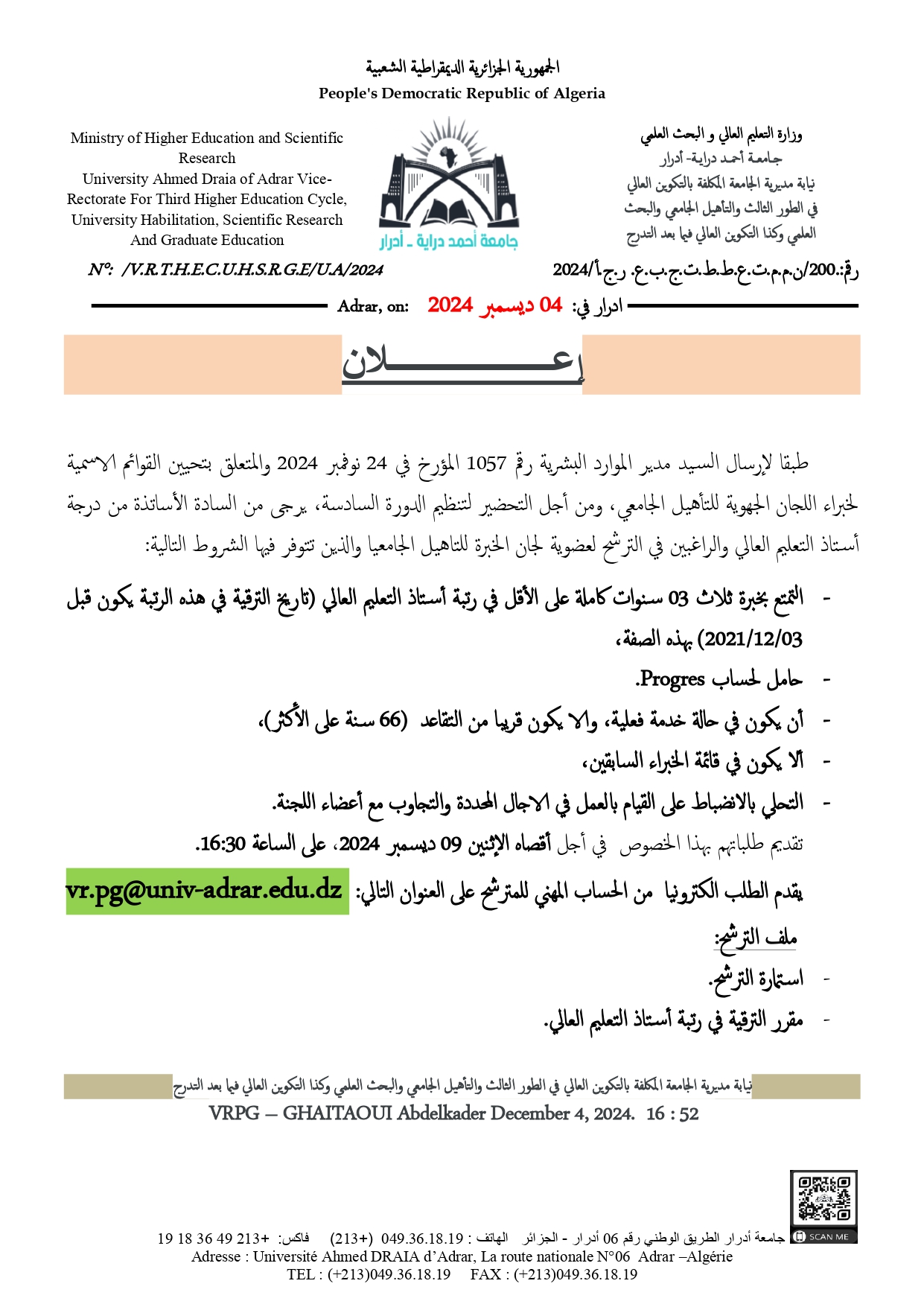 إعلان للترشح لعضوية لجان خبرة التأهيل الجامعي للتحميل : استمارة الترشح لعضوية لجان خبرة التأهيل الجامعي 595 Share FacebookGoogle+البريد الإلكترونيTwitter