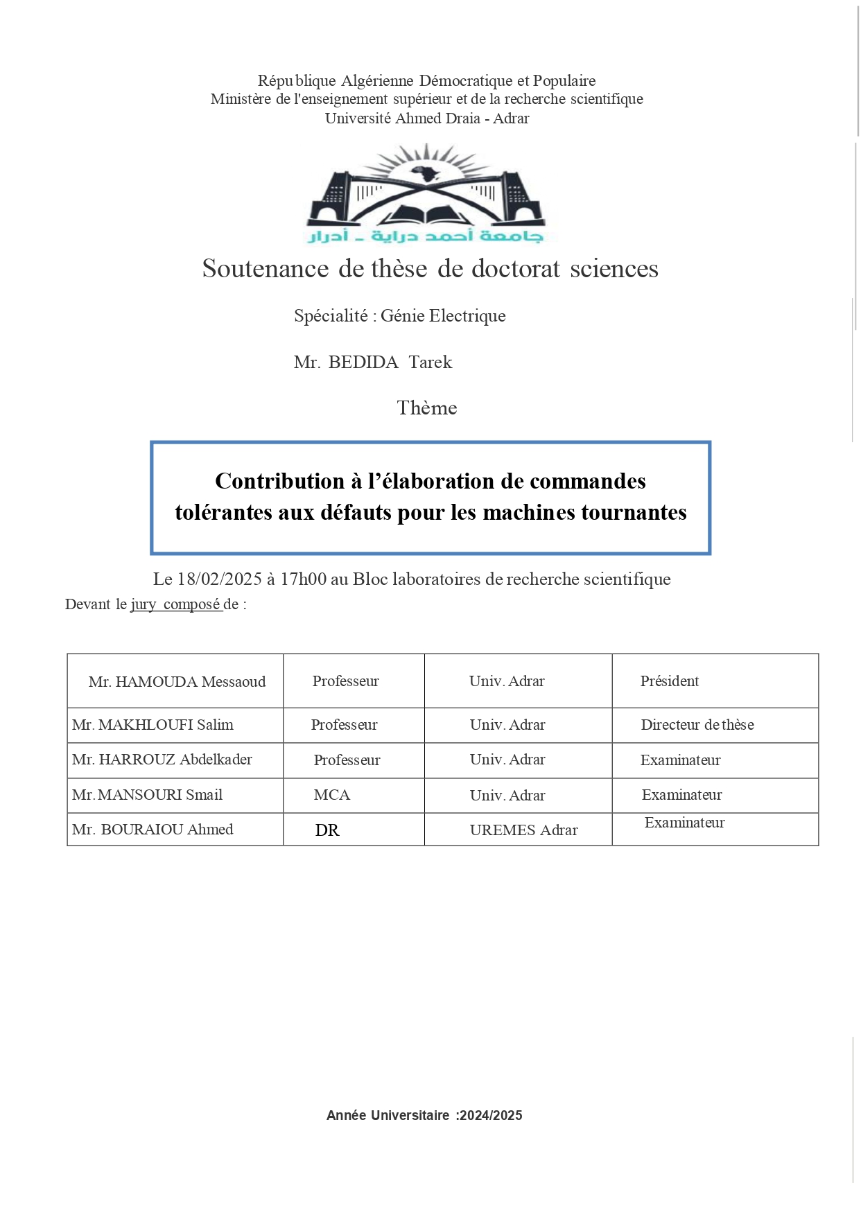 Contribution à l’élaboration de commandes tolérantes aux défauts pour les machines tournantes 487 Share FacebookGoogle+البريد الإلكترونيTwitter