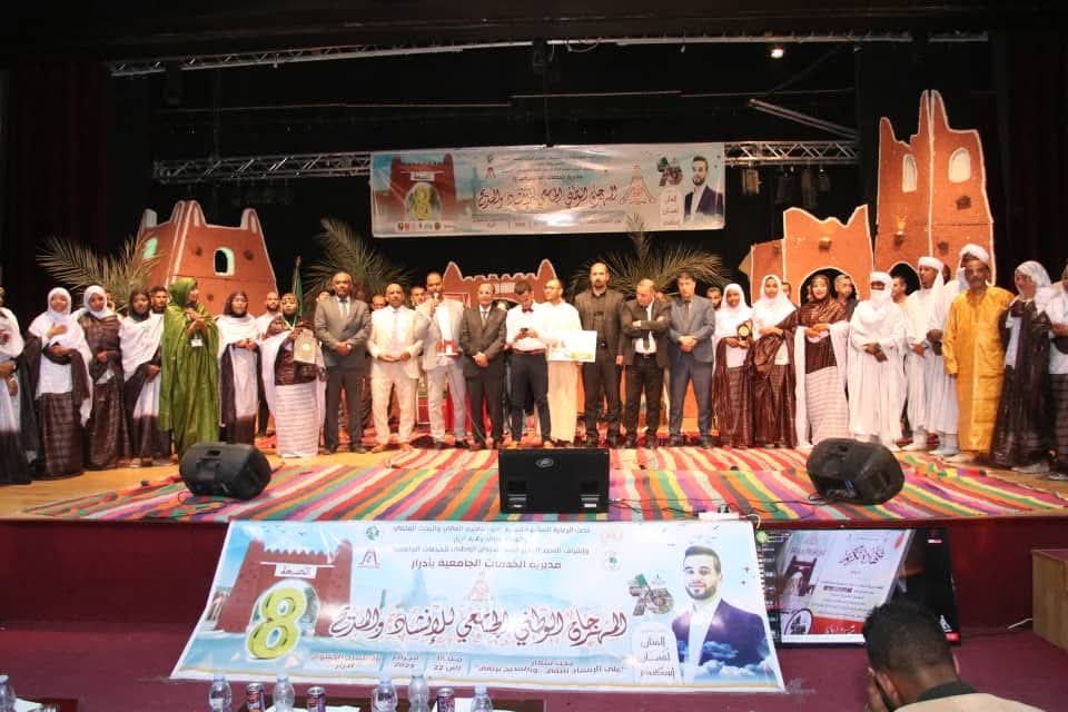 اختتمت بمسرح تليلان بأدرار  مساء السبت22فيفري2025 فعاليات  الطبعة الثامنة  للمهرجان الجامعي للإنشاد والمديح الديني، الذي أشرفت عليه مديرية الخدمات الجامعية بأدرار بمشاركة 21  ديوان مؤسسة جامعية.على مدى أربعة أيام