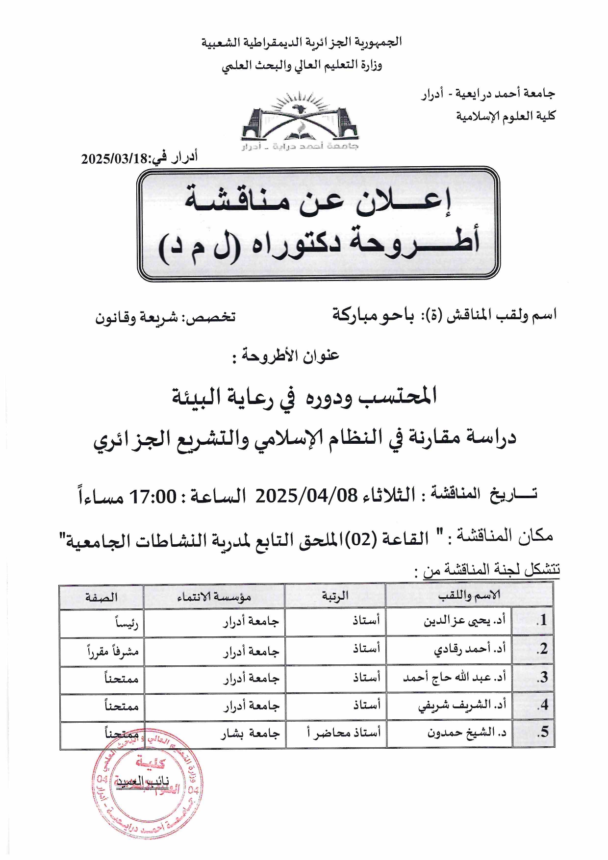 المحتسب ودوره في رعاية البيئة دراسة مقارنة في النظام الإسلامي والتشريع الجزائري 494 Share FacebookGoogle+البريد الإلكترونيTwitter
