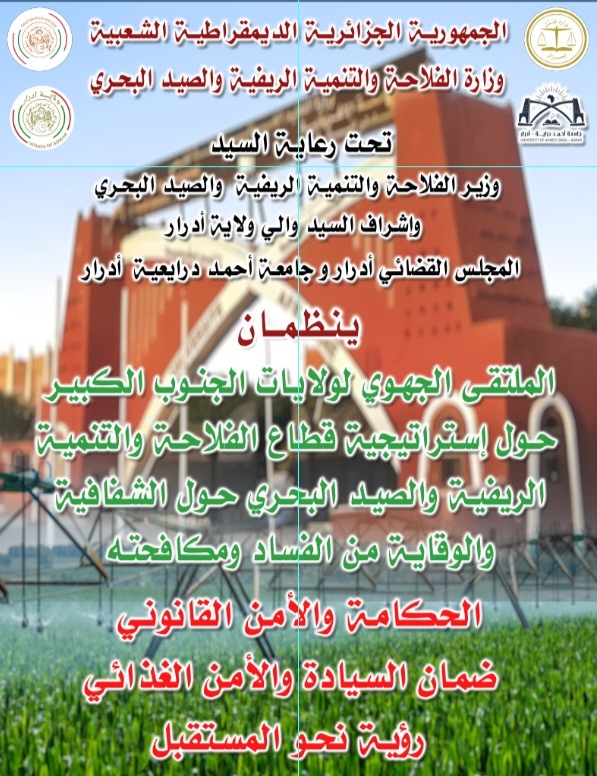 الملتقى الجهوي الخامس لولايات الجنوب الكبير الموسوم ب: الحكامة والأمن القانوني ضمان السيادة والأمن الغذائي رؤية نحو المستقبل