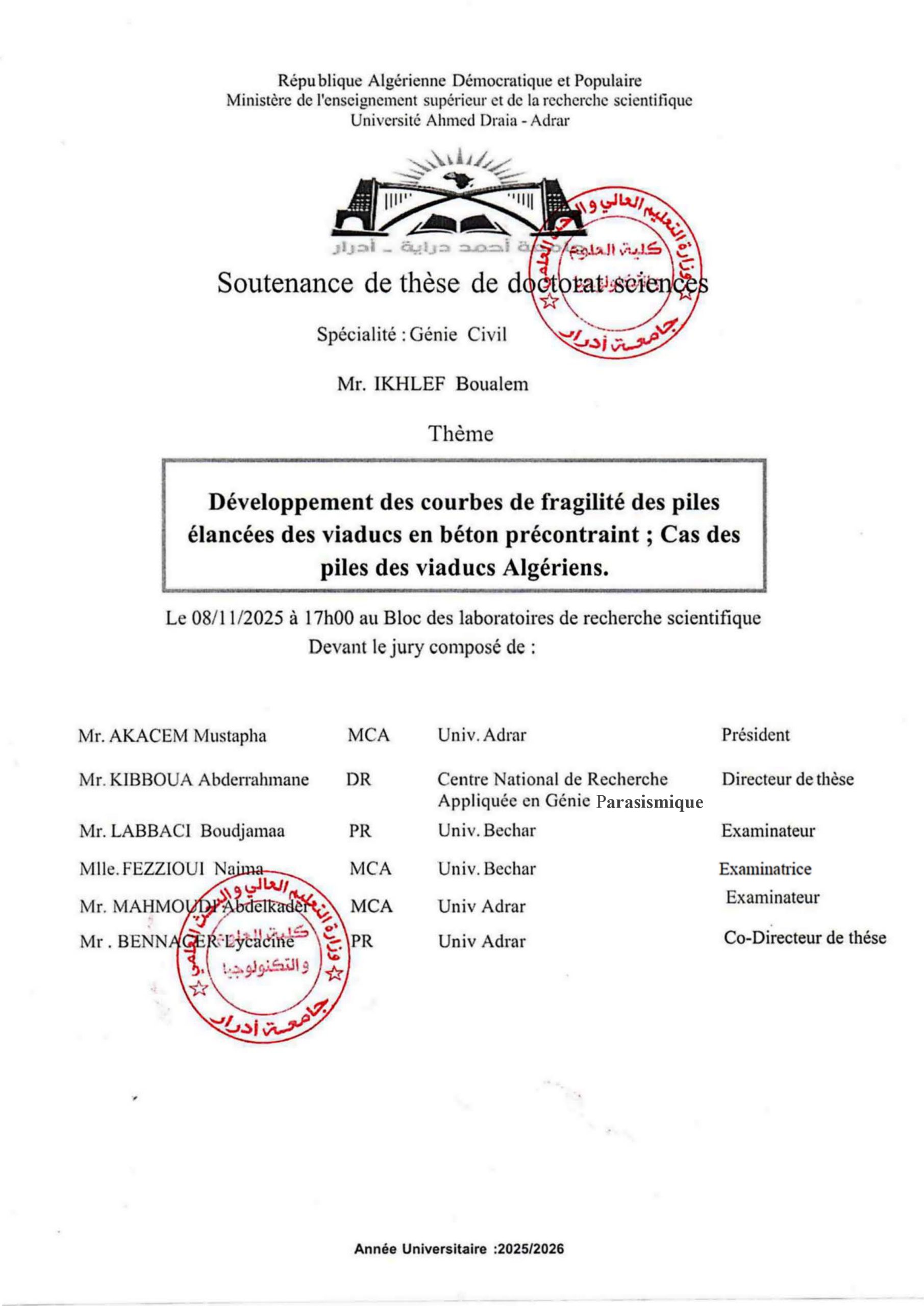 Développement des courbes de fragilité des piles élancées des viaducs en béton précontraint ; Cas des piles des viaducs Algériens 23 Share FacebookGoogle+البريد الإلكترونيTwitter