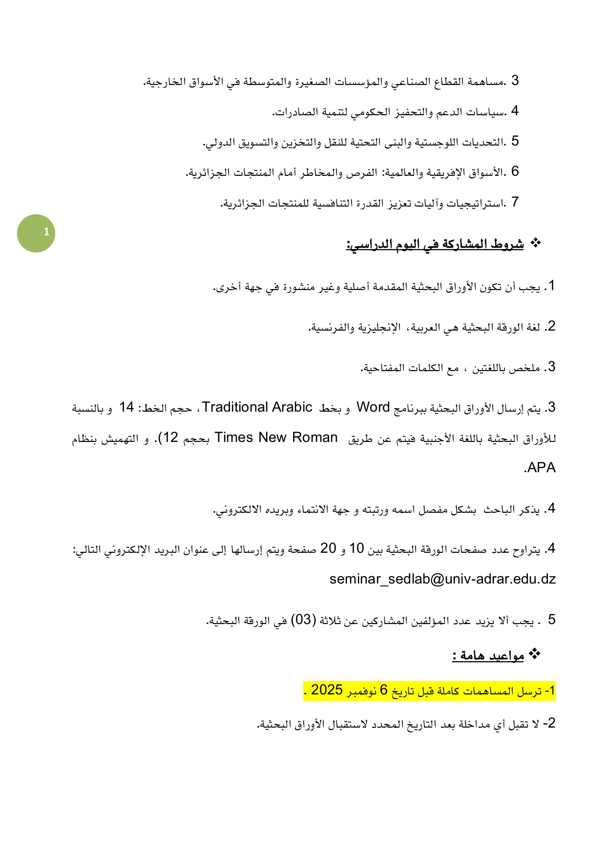 يوم دراسي حول تحديات تنويع الصادرات الجزائرية خارج قطاع المحروقات 14 Share FacebookGoogle+البريد الإلكترونيTwitter