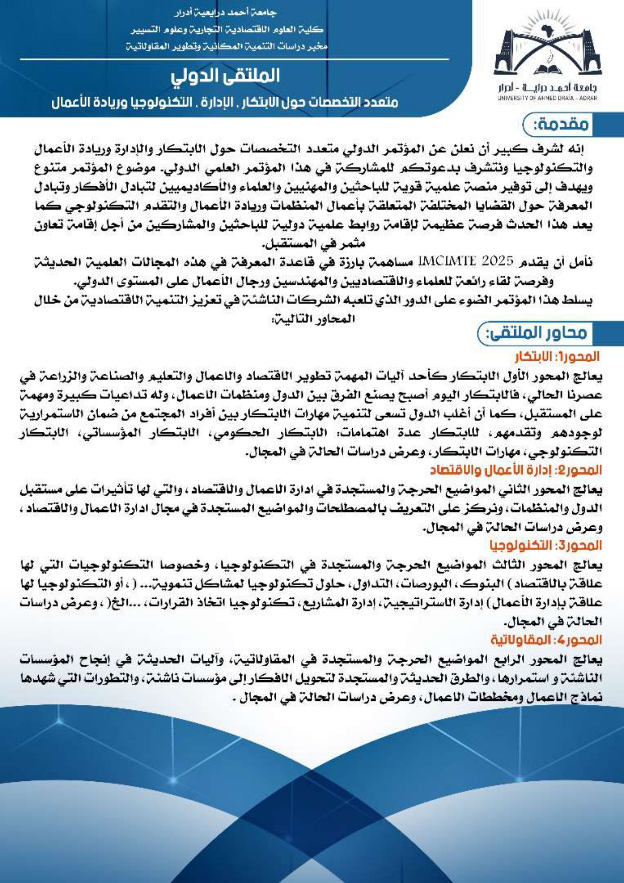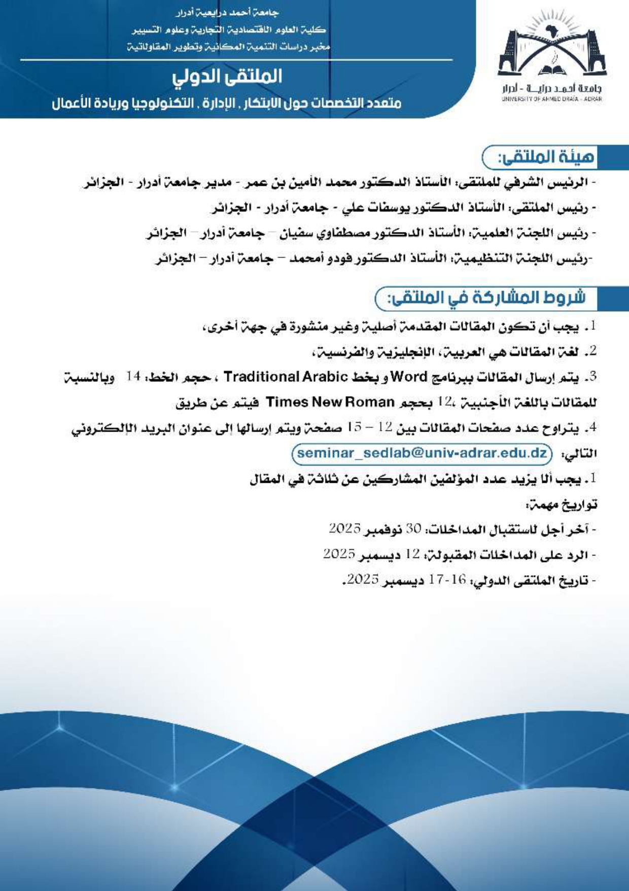 الملتقى الدولي متعدد التخصصات حول الابتكار, الإدارة, التكنولوجيا وريادة الأعمال 17-16 ديسمبر 2025 للتحميل : الملتقى الدولي متعدد التخصصات حول الابتكار, الإدارة, التكنولوجيا وريادة الأعمال الملتقى الدولي متعدد التخصصات حول الابتكار, الإدارة, التكنولوجيا وريادة الأعمال (الانجليزية) الملتقى الدولي متعدد التخصصات حول الابتكار, الإدارة, التكنولوجيا وريادة الأعمال (الفرنسية) 22 Share FacebookGoogle+البريد الإلكترونيTwitter