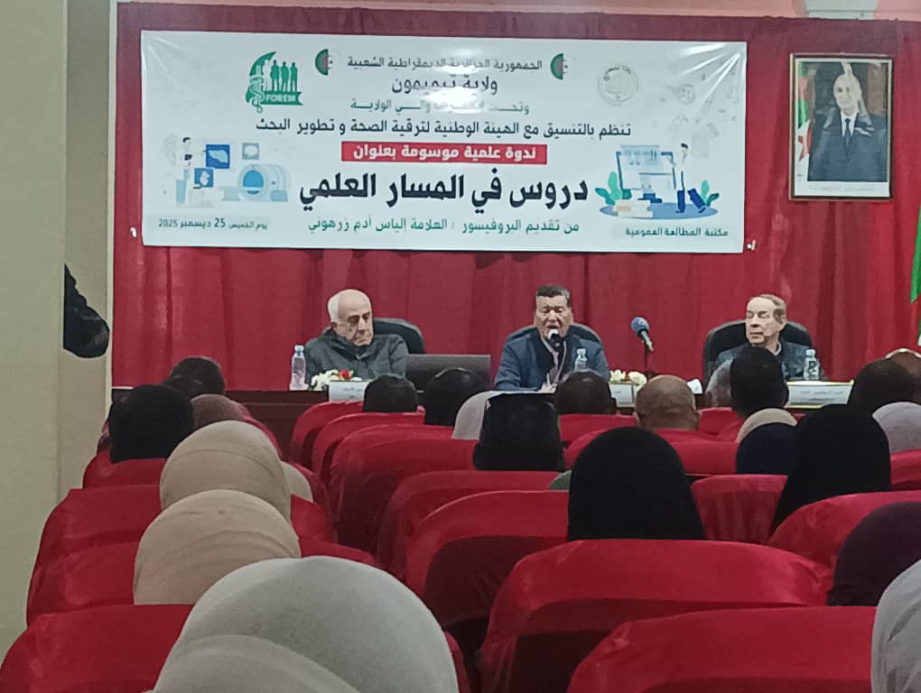 في حدث علمي بارز شهدته ولاية تيميمون يوم الخميس 25 ديسمبر 2025، وبمبادرة من السيد الوالي وبالتنسيق مع جامعة “أحمد درايعية” بأدرار، احتضنت “قاعة السينما” ابتداء من الساعة العاشرة صباحا لقاء تاريخيا مع القامة العلمية الجزائرية العالمية، البروفيسور إلياس آدم زرهوني.