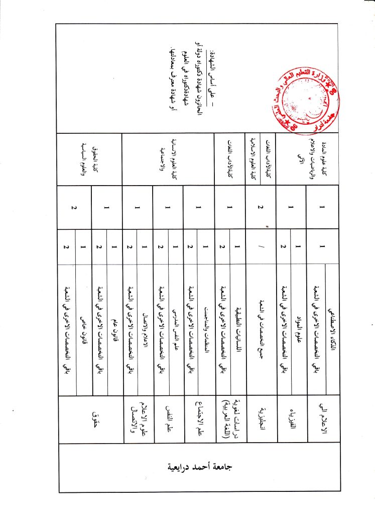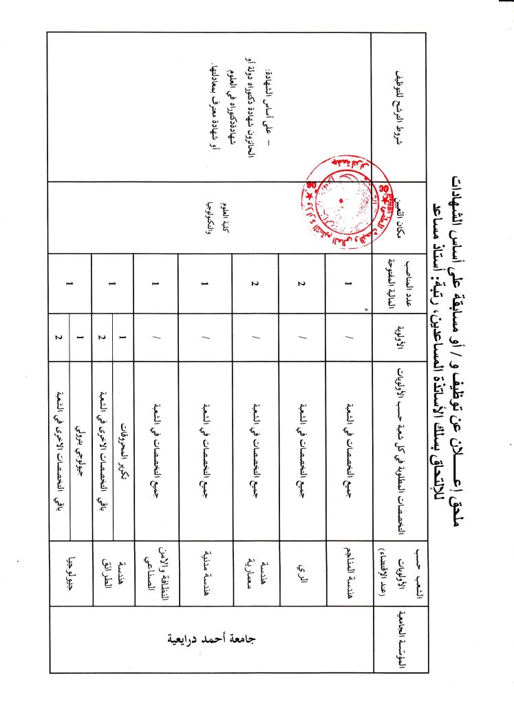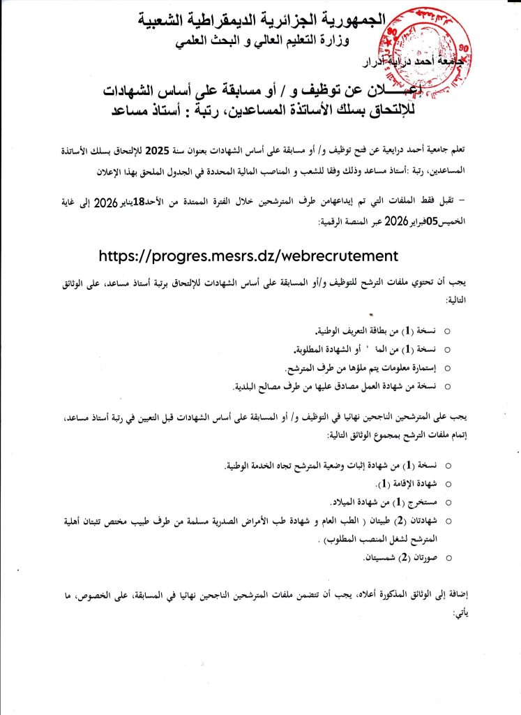 إعلان عن مسابقة على أساس الشهادات للالتحاق بسلك الأساتذة المساعدين, رتبة : أستاذ مساعد قسم “ب”