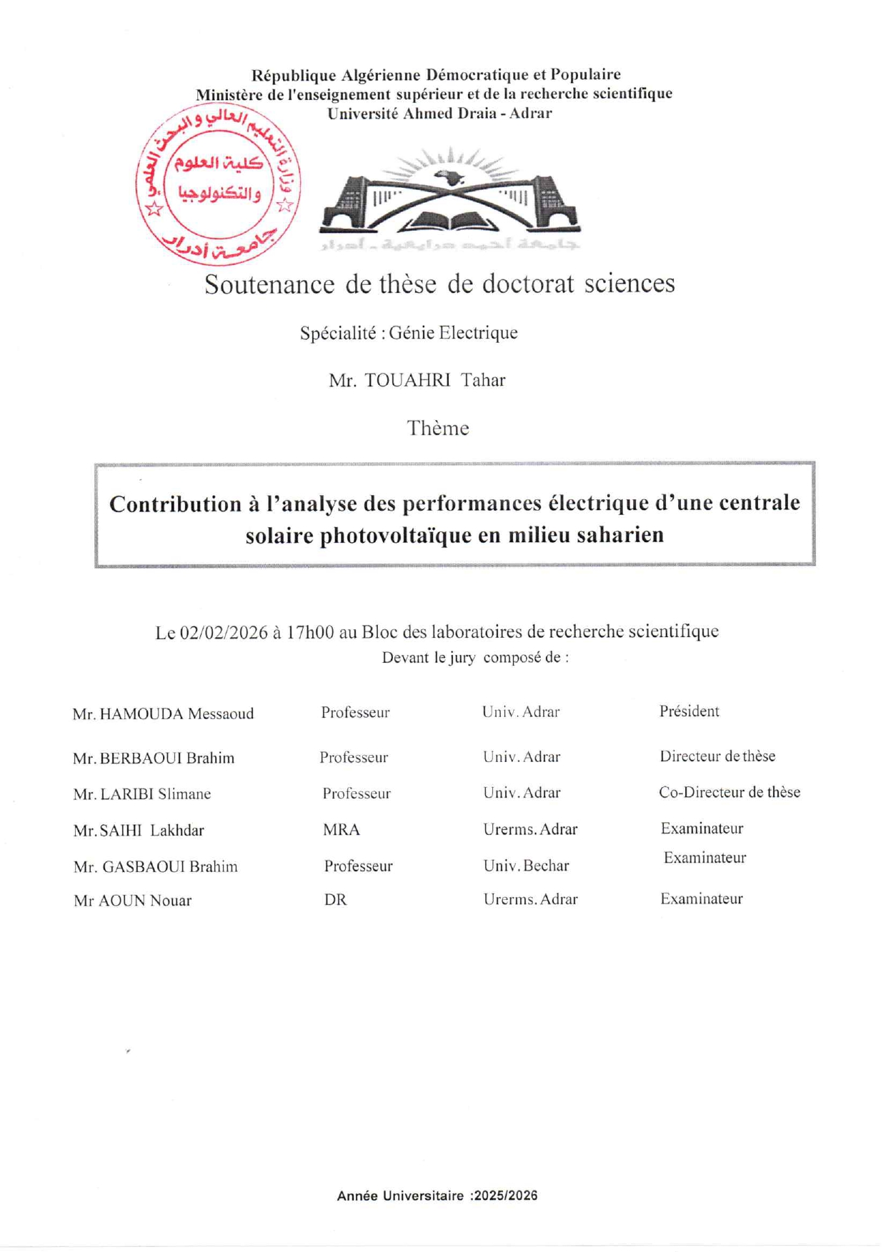 Contribution à l’analyse des performances électrique d’une centrale solaire photovoltaïque en milieu saharien 17 Share FacebookGoogle+البريد الإلكترونيTwitter