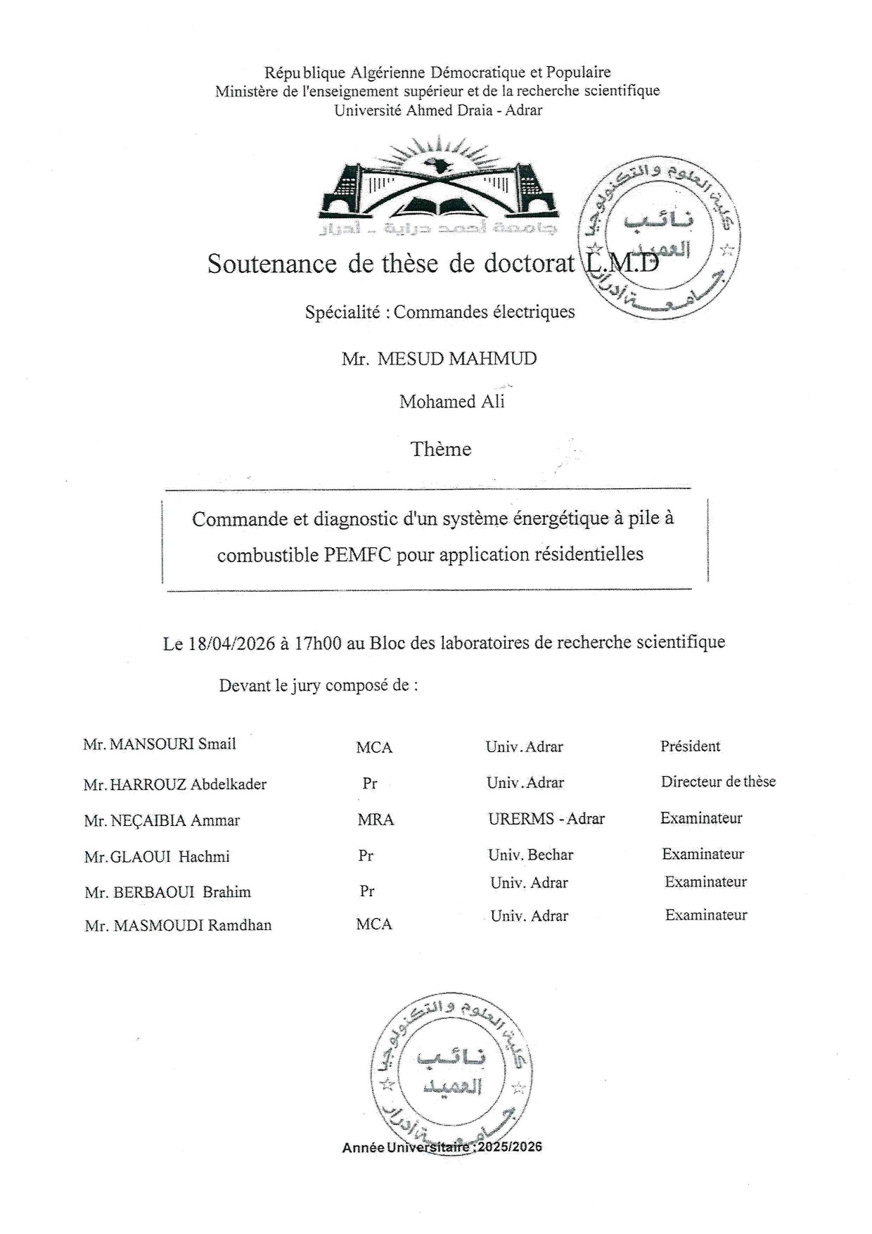 Commande et diagnostic d’un système énergétique à pile à combustible PEMFC pour application résidentielles 12 Share FacebookGoogle+البريد الإلكترونيTwitter