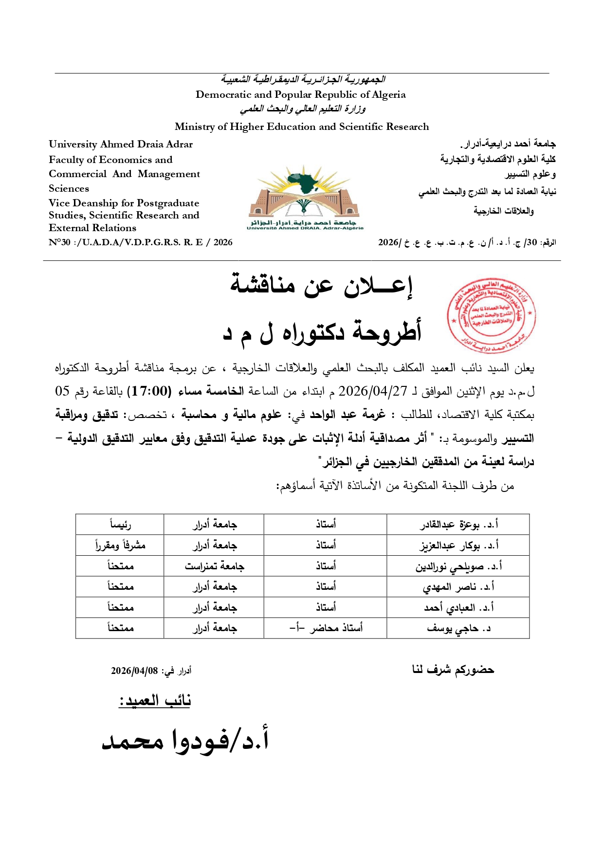 أثر مصداقية أدلة الإثبات على جودة عملية التدقيق وفق معايير التدقيق الدولية – دراسة لعينة من المدققين الخارجيين في الجزائر 14 Share FacebookGoogle+البريد الإلكترونيTwitter