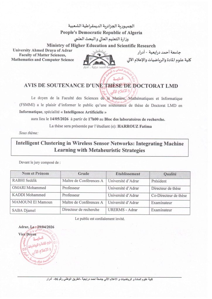 Intelligent Clustering in Wireless Sensor Networks: Integrating Machine Learning with Metaheuristic Strategies 20 Share FacebookGoogle+البريد الإلكترونيTwitter