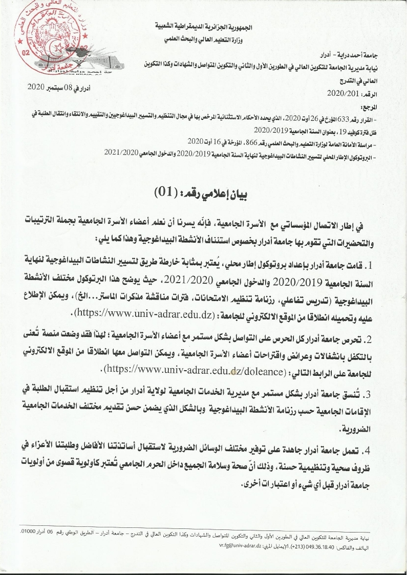 إعلان بخصوص تعليق التكوين (العطلة الأكاديمية)