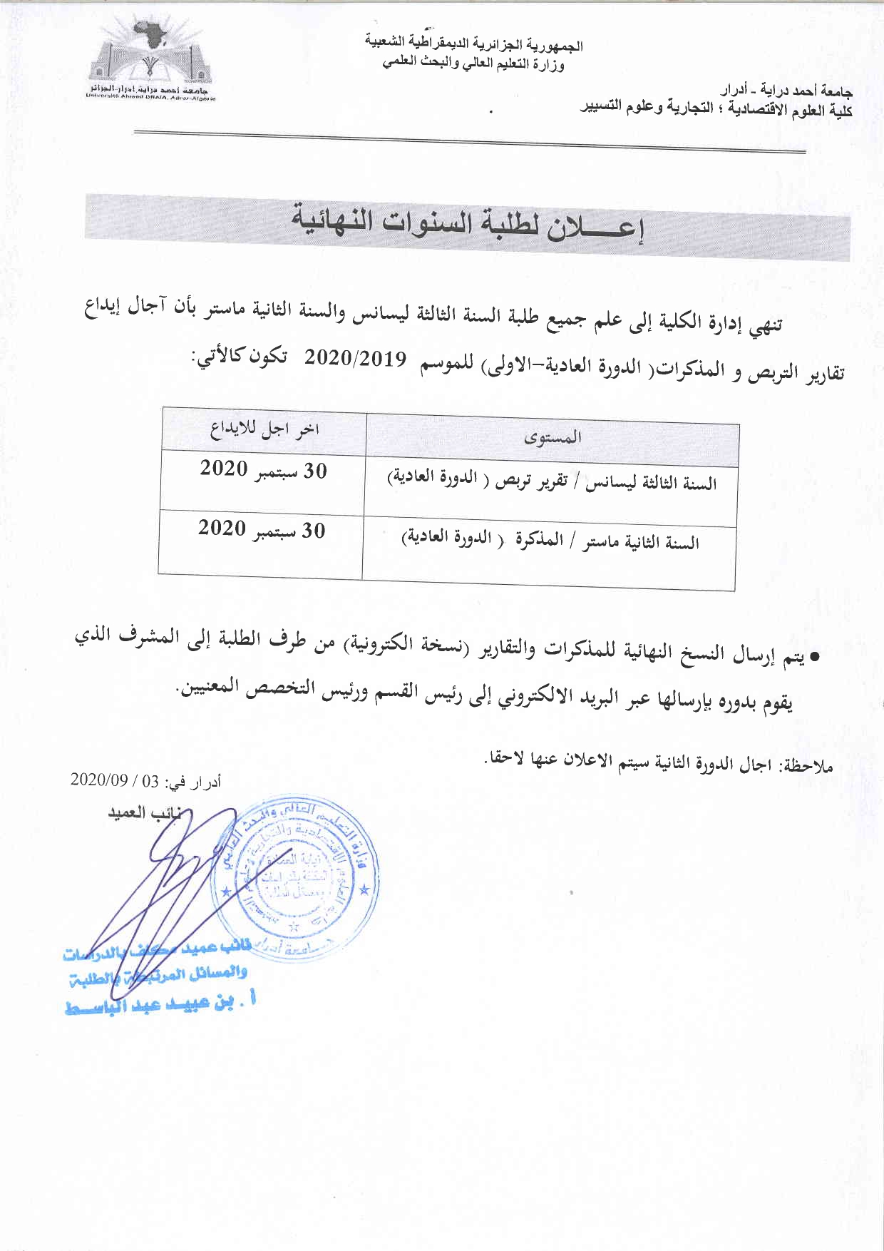 إعلان لطلبة السنوات النهائية كلية العلوم الاقتصادية والتجارية وعلوم التسيير 1٬143 Share FacebookGoogle+البريد الإلكترونيTwitter