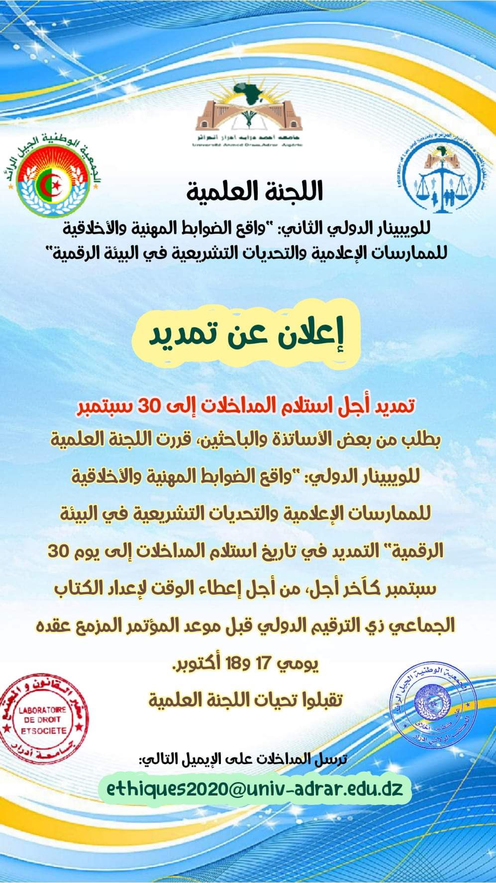 الويبينار الدولي الثاني: إعلان عن تمديد استلام المداخلات الى 30 سبتمبر 2٬114 Share FacebookGoogle+البريد الإلكترونيTwitter