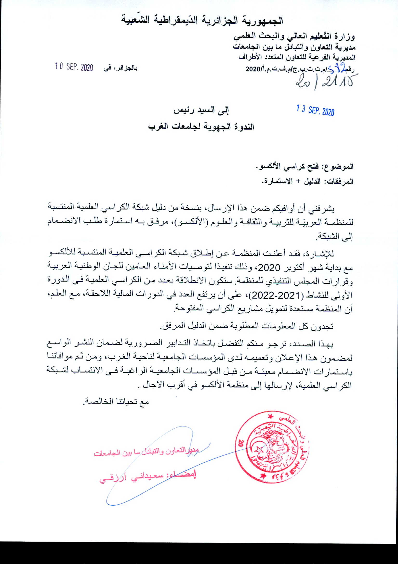 PROJETS CHAIRS-ALECSO استمارة شبكة الكراسي العلمية المنتسبة للالكسو دليل شبكة الكراسي العلمية المنتسبة للالكسو 2٬118 Share FacebookGoogle+البريد الإلكترونيTwitter
