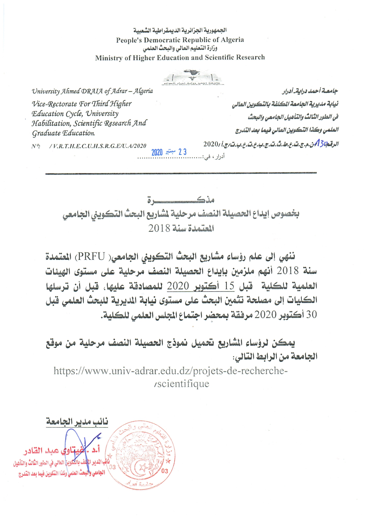 مذكرة بخصوص الحصيلة النصف مرحلية لمشاريع البحث المعتمدة 2018 1٬634 Share FacebookGoogle+البريد الإلكترونيTwitter
