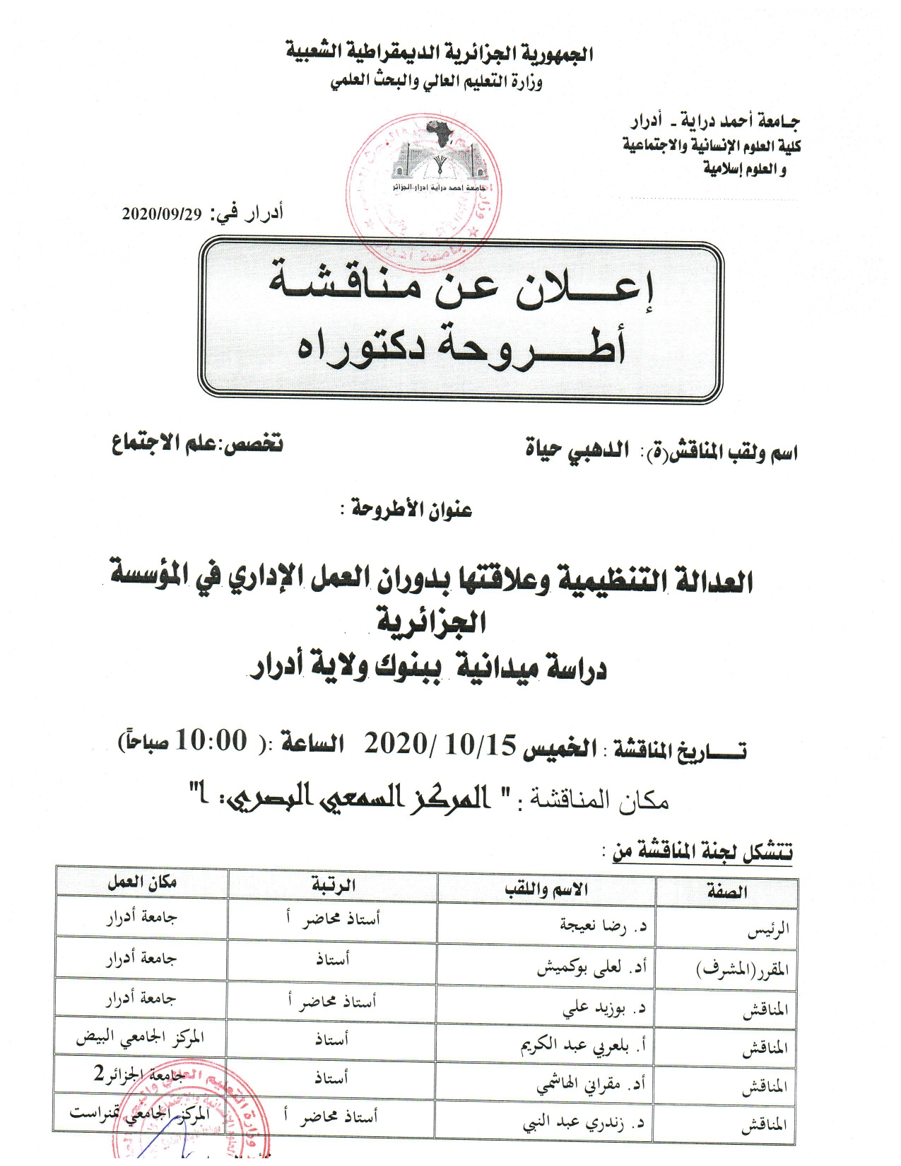 العدالة التنظيمية وعلاقتها بدوران العمل الإداري في المؤسسة الجزائرية دراسة ميدانية ببنوك ولاية أدرار 904 Share FacebookGoogle+البريد الإلكترونيTwitter