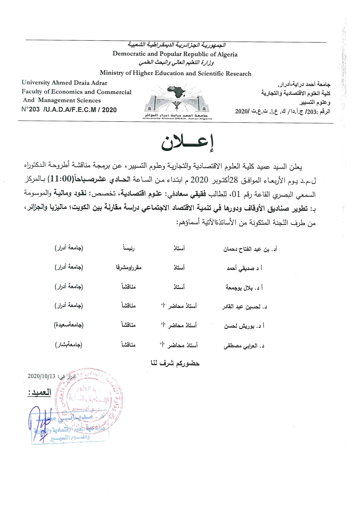 تطوير صناديق الأوقاف ودورها في تنمية الاقتصاد الاجتماعي دراسة مقارنة بين الكويت، ماليزيا والجزائر 612 Share FacebookGoogle+البريد الإلكترونيTwitter