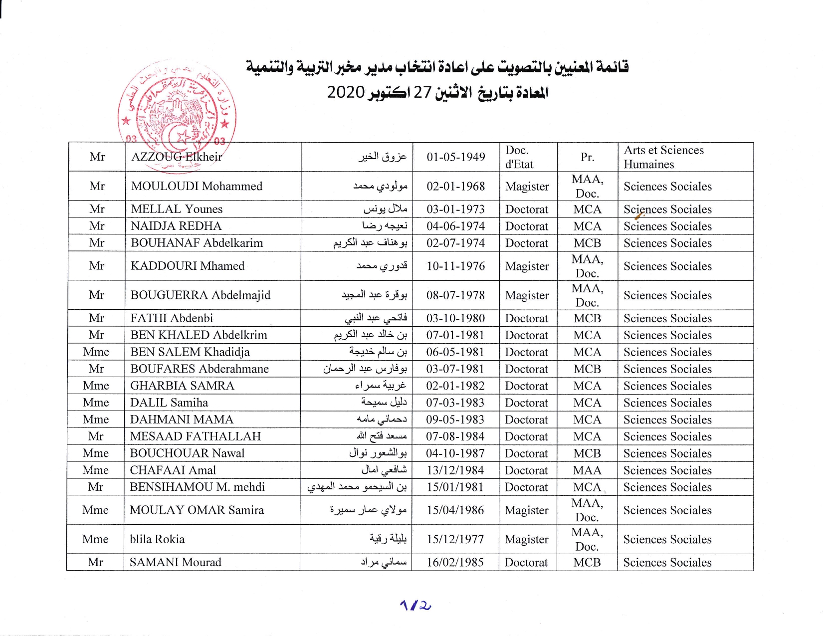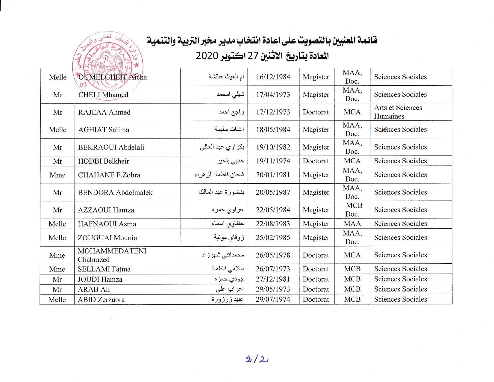 قائمة الأساتذة المعنيين بانتخاب مدير مخبر التربية والتنمية 3٬062 Share FacebookGoogle+البريد الإلكترونيTwitter