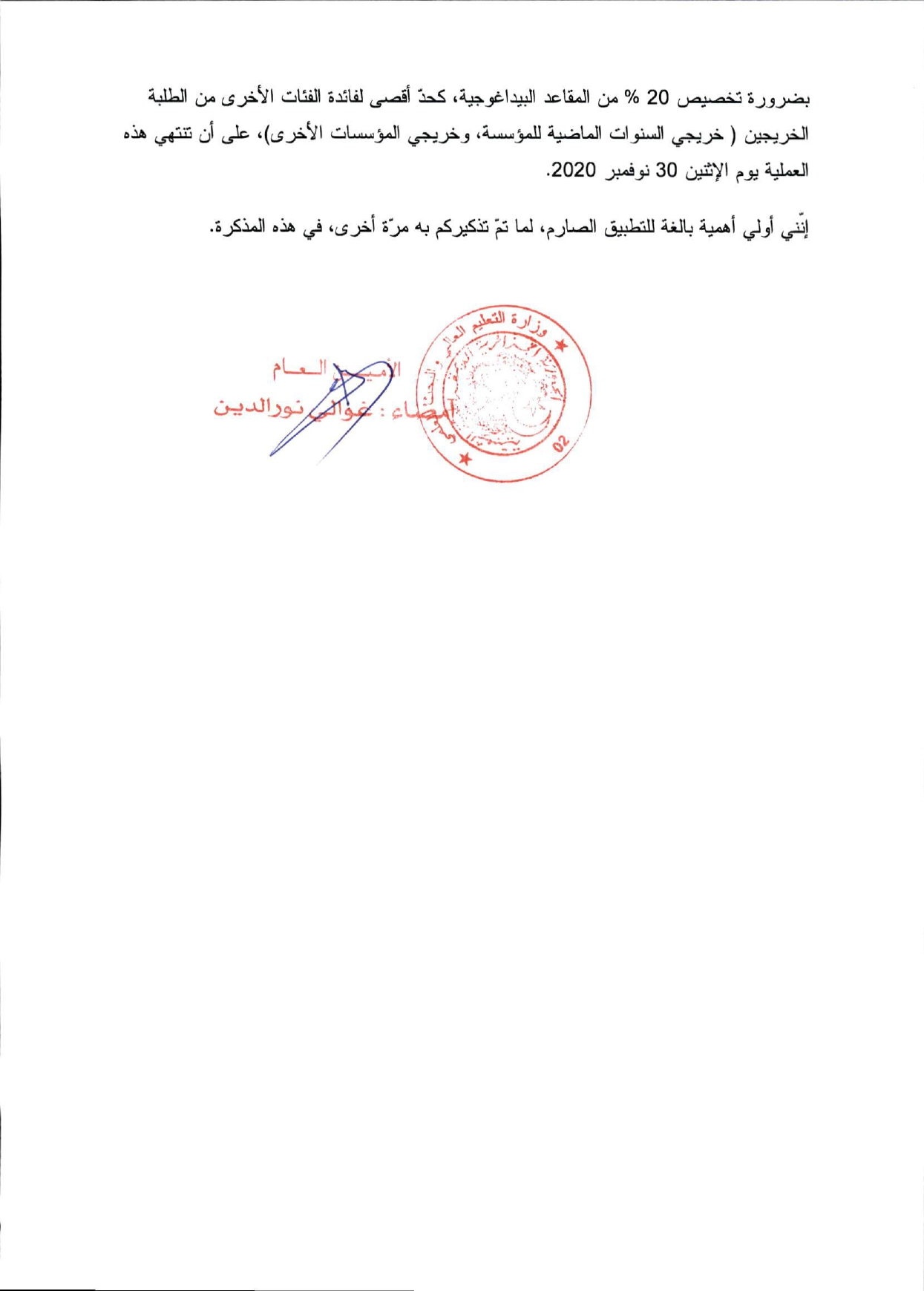 إعلان بخصوص حاملي شهادة البكالوريا الجدد الذين تخلفوا عن التسجيل الأولي وحصة 20% من المقاعد المخصصة للماستر 1٬960 Share FacebookGoogle+البريد الإلكترونيTwitter