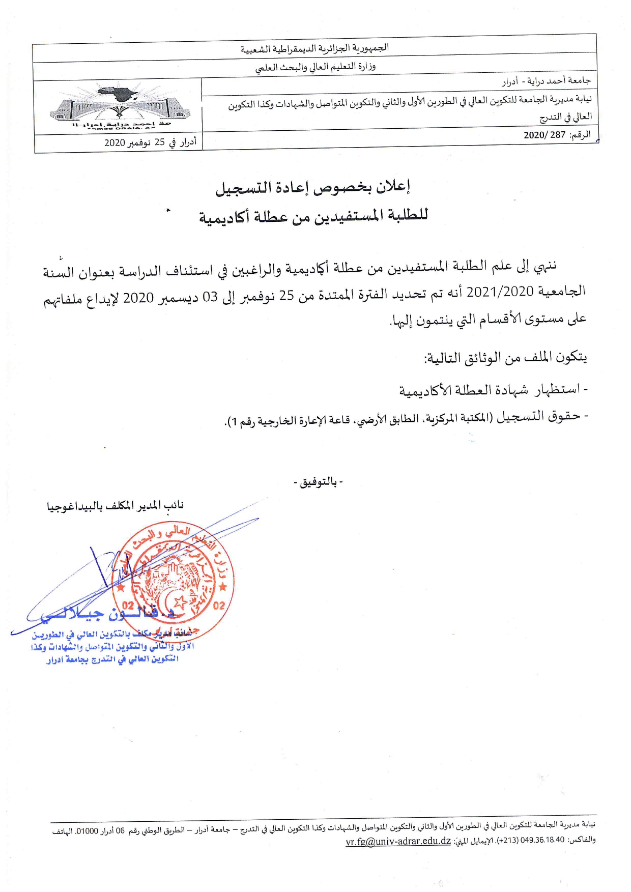 إعلان بخصوص إعادة التسجيل للطلبة المستفيدين من عطلة أكاديمية 2٬052 Share FacebookGoogle+البريد الإلكترونيTwitter