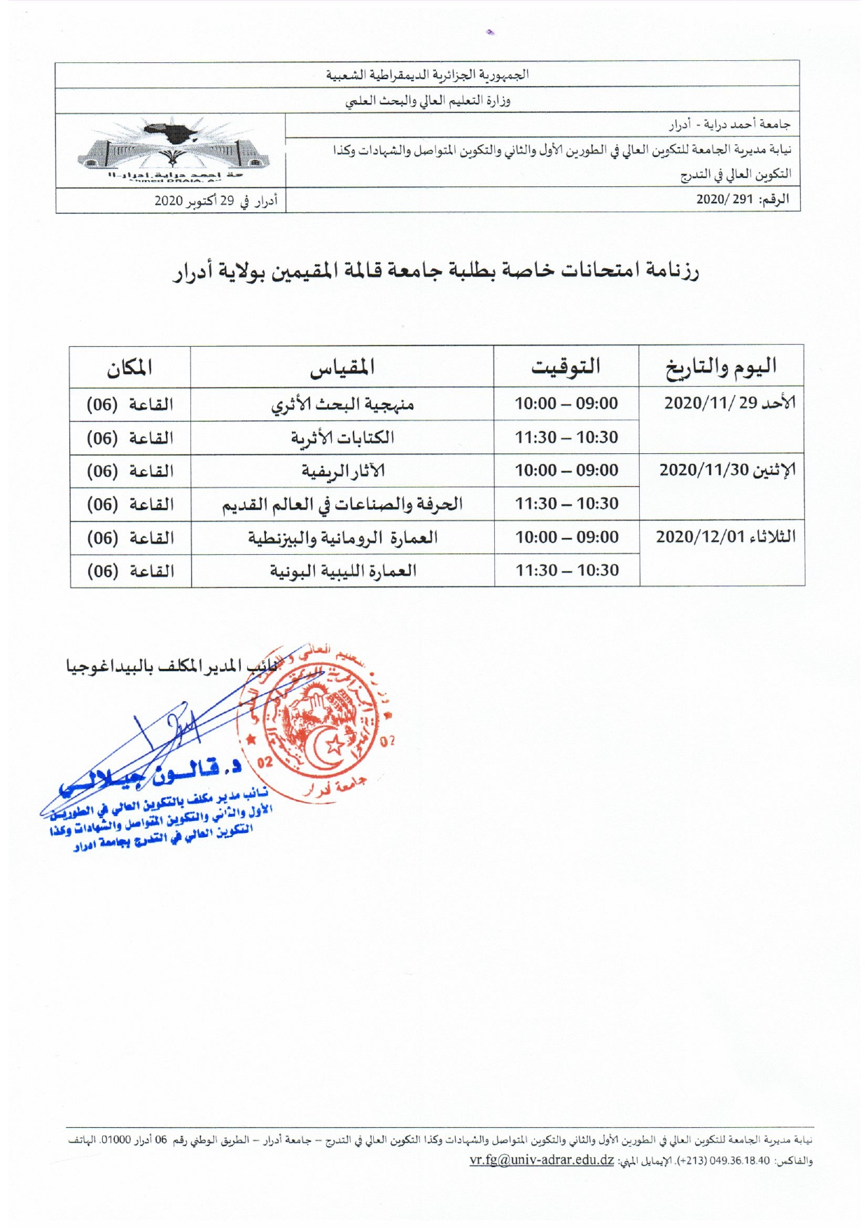 رزنامة امتحانات خاصة لطلبة جامعة قالمة المقيمين بولاية أدرار 1٬731 Share FacebookGoogle+البريد الإلكترونيTwitter