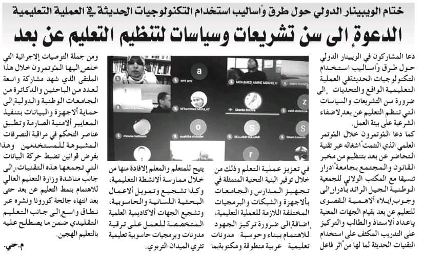 ختام الويبينار الدولي حول طرق وأساليب استخدام التكنولوجيات الحديثة في العملية التعليمية 878 Share FacebookGoogle+البريد الإلكترونيTwitter