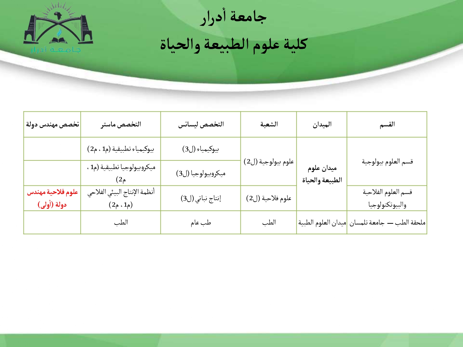 تخصصات كلية علوم الطبيعة والحياة التكوين في الطور الأول التكوين في الطور الثاني ليسانس ماستر ﺍﻟﺒــﻮﺍﺑﺔ ﺍﻹﻟﻜﺘﺮﻭﻧﻴـﺔ ﻟﺤﺎﻣﻠﻲ ﺷﻬﺎﺩﺓ ﺍﻟﺒﻜﺎﻟﻮﺭﻳﺎ 2025